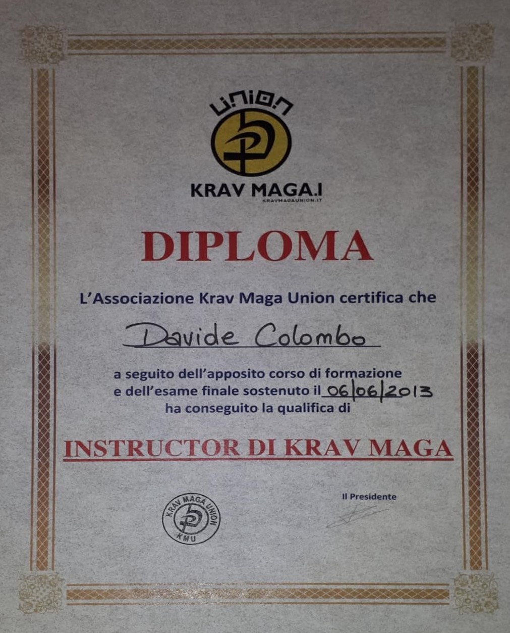 - Istruttore di Difesa Personale con livello MASTER Kmu-Italia